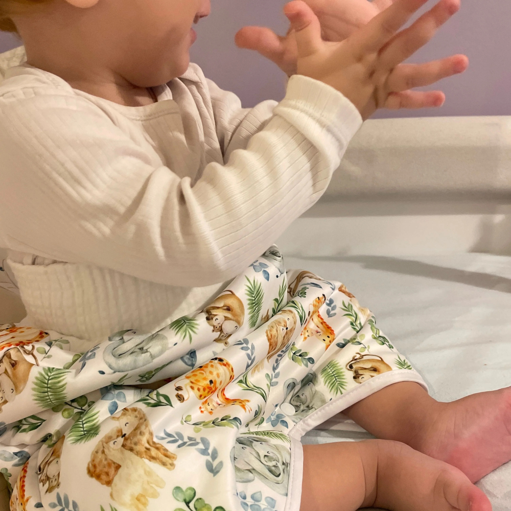 Der Windelrock schützt das Bett und andere Untergründe vor Auslaufen und bietet deinem Kind auf der Haut ein angenehmes Gefühl. Der Windelrock ist Ökot-Tex 100 zertifiziert und wird aus atmungsaktiven Materialien gefertigt. Der flexible Bauchbund macht das an- und ausziehen ganz einfach und bleibt beim Schlafen an Ort und Stelle. Windelfrei ganz einfach ab 6kg bis ca. 2,5Jahren mit Größe 1 und von ca. 2 bis 6 Jahren mit Größe 2.